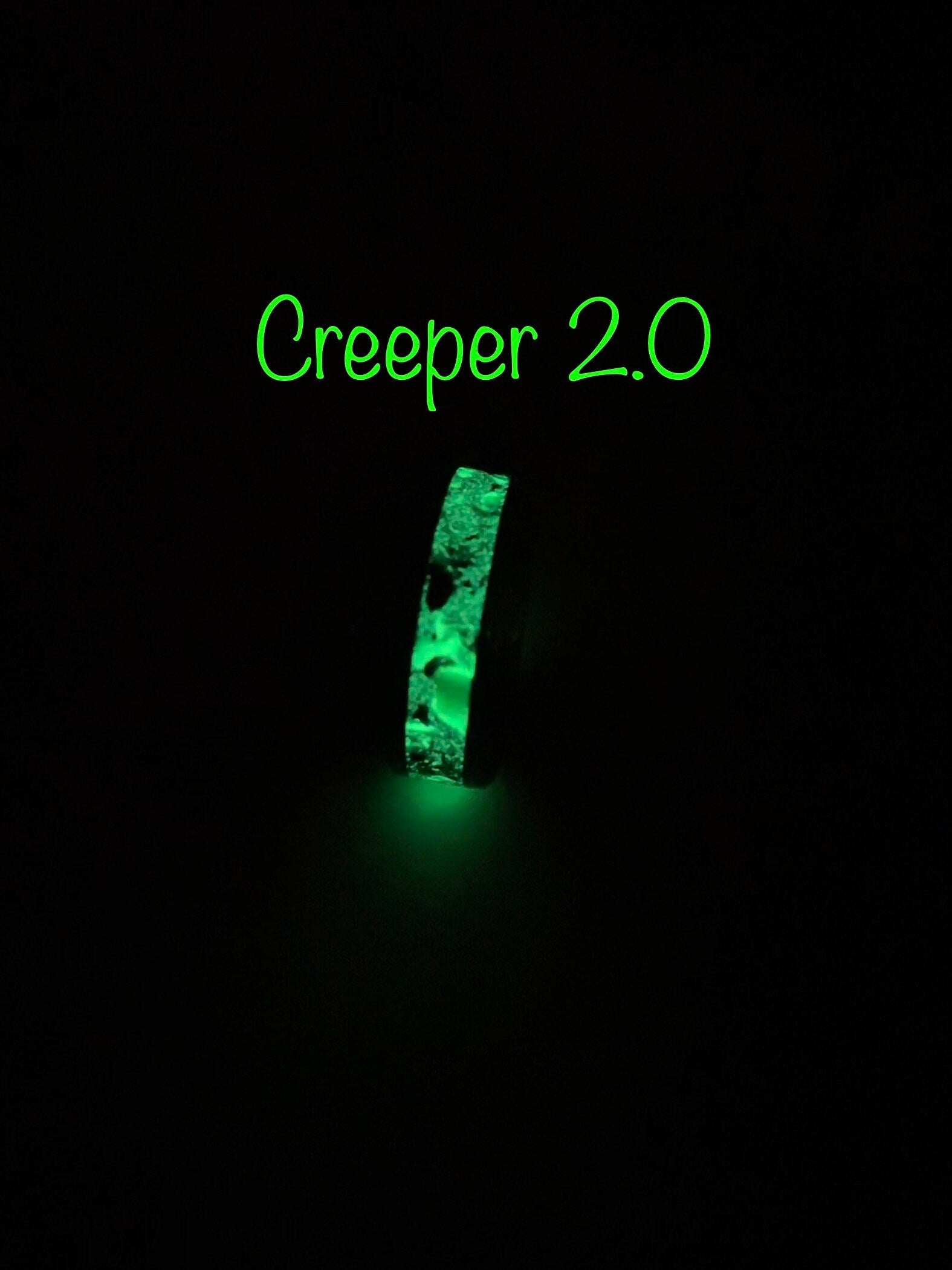 This version of the Minecraft inspired Creeper gets a little change up from the boundless version. Featured in a Cobalt Chromium channel this version contains emerald, black emerald opal, meteorite shavings and special mix of emerald and glow pigments.
