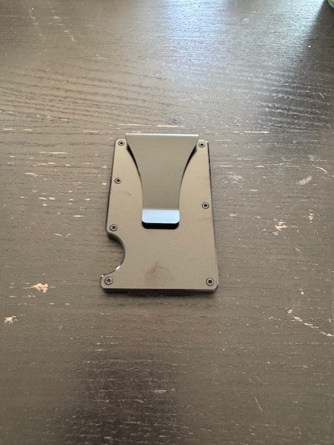 Metal and wood card wallets featuring a modified version of our Dr. Grant design. RFID protected wallets can hold up to 15 cards with a money clip on the back.