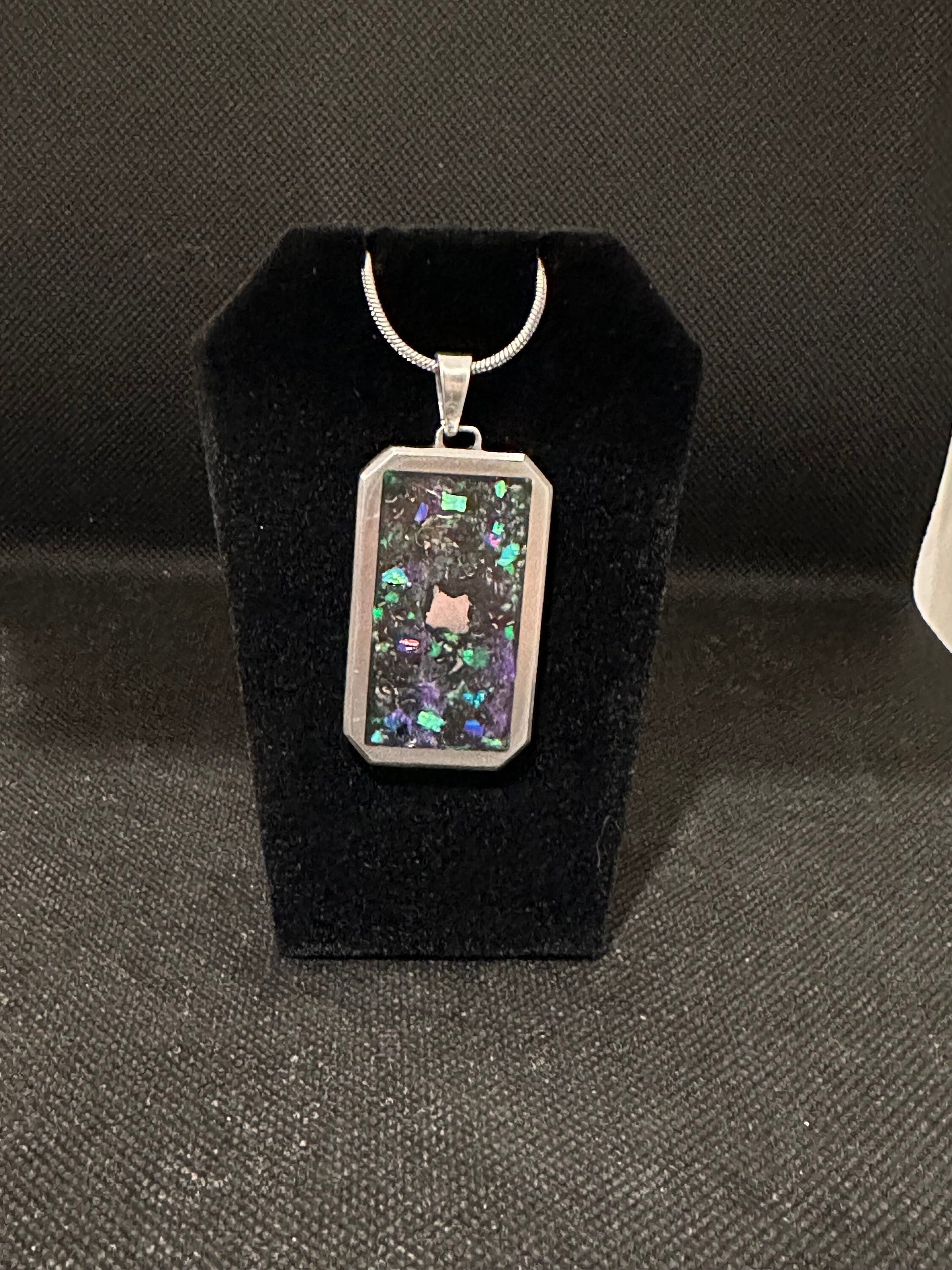 Disclaimer: The images contained are a representation of the general appearance of the pendant. Material size and shape vary giving each pendant its own unique appearance truly making it one of a kind.