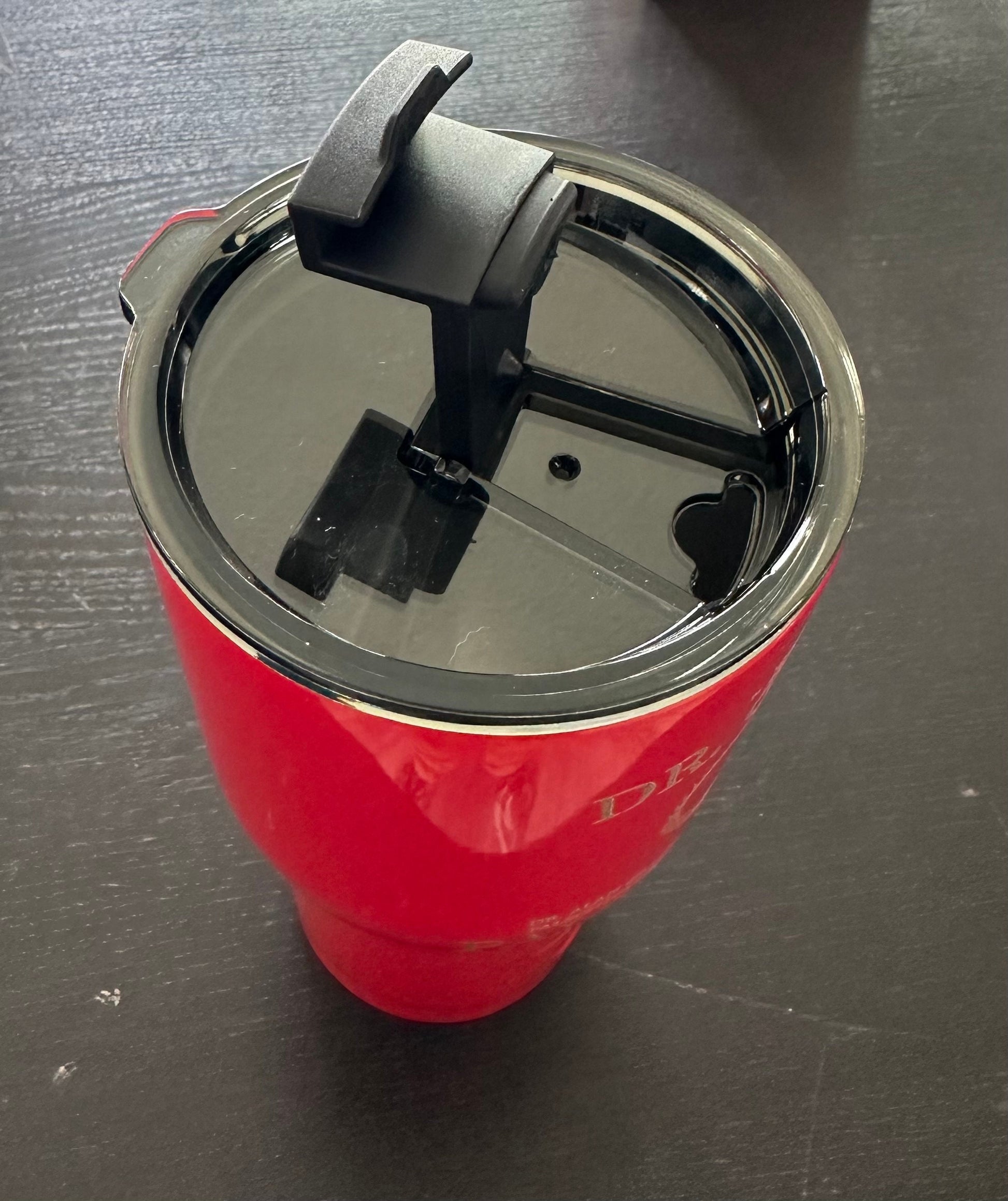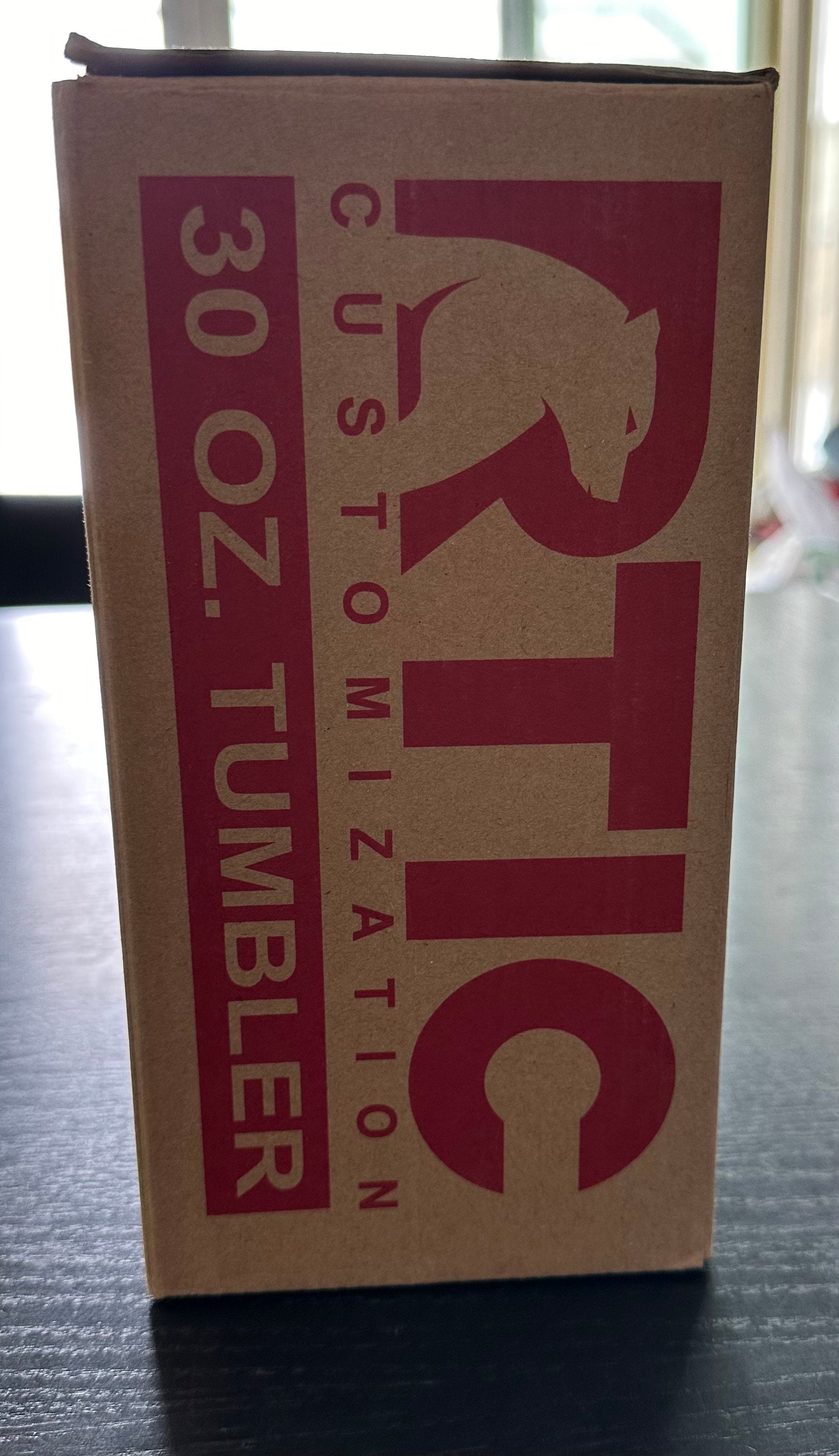 Red 30 ounce RTIC tumbler engraved with our Dr. Grant Paleontology design.